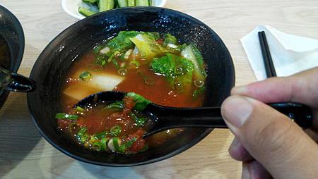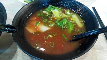 最後是今天最令我驚豔的甜味四溢蕃茄湯,蕃茄湯喝起來的鮮甜無比在這一碗內展現得淋漓盡致,喝這碗番茄的味道像是在喝牛蕃茄搭配蜂蜜一樣的果汁,十分的鮮甜,真的已經進入到養生食補等級的料理,尤其最後面都是番茄塊與番茄子,可以了解老闆每日用心現敖番茄的時間。