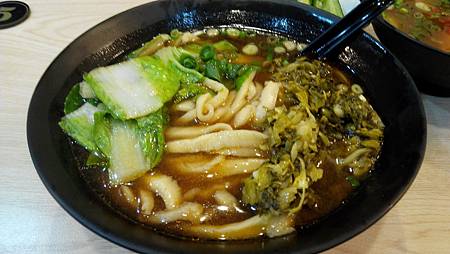 在門口就可以看見師傅們用手用力的在揉麵糰,手工的刀削麵麵體經過搓揉帶出它的嚼與咬勁,加上他們牛肉湯中藥味道不會過重,而是十分的清爽不油膩,'讓刀削麵麵體跟牛肉湯搭起來十分可口。