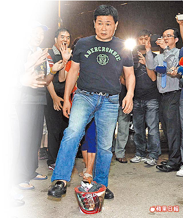 昨晚6時45分,顏清標順利踏出台中監獄,他先驅車到溫泉旅館沐浴更衣。晚上8時許,才穿深藍色T恤和牛仔褲返抵服務處跨火爐,顏父顏懷立即餵他吃豬腳和紅蛋,顏清標事先特別交代不要麵線,盼不再和官司糾纏。